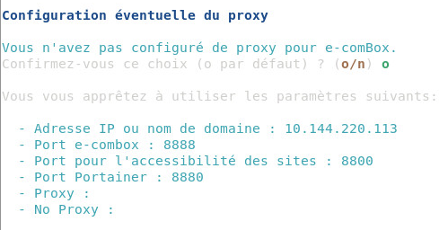 Vous pouvez modifier ces valeurs en éditant le fichier /opt/e-comBox/param.conf puis en relançant ce script.