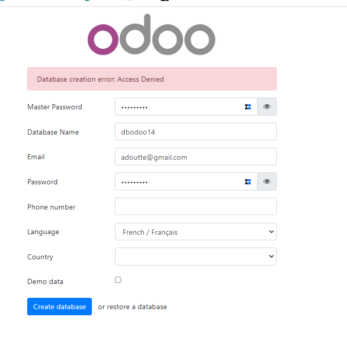 | Description | Au clic sur Create database on obtient un message "Database creation error : access denied" | ||||