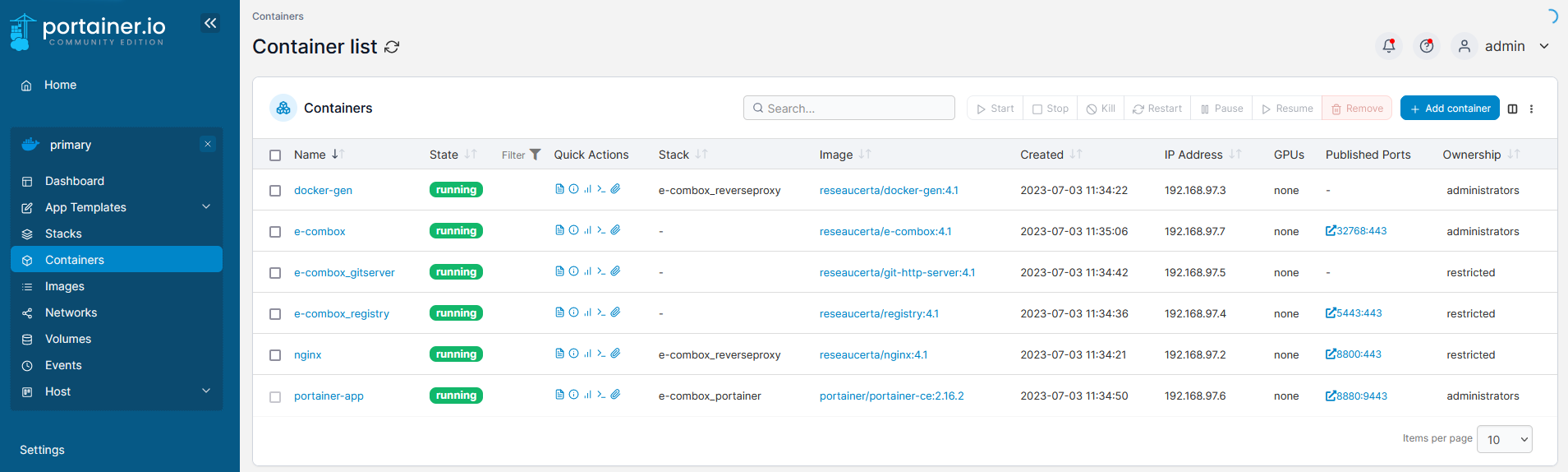 Bonjour, pour l'instant j'ai débloqué mon problème, en modifiant pour le container "e-combox-gitserver" l'Access control. Je l'ai passé en restricted avec pour Authorized teams: profs Cordialement Bonne journée |