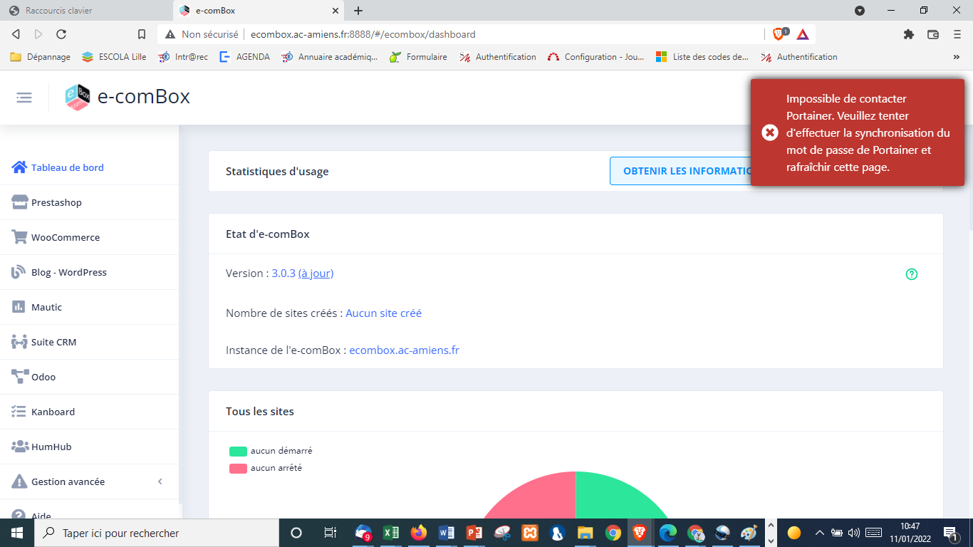 Je viens fraichement d'installer E-combox V3 mais, je rencontre un problème pour accéder à la gestion du portainer.