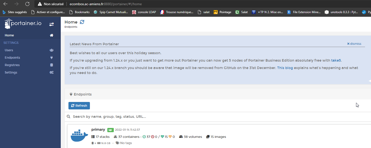 Lien vers administration de Portainer : http://fqdn:8880/portainer/#!/auth