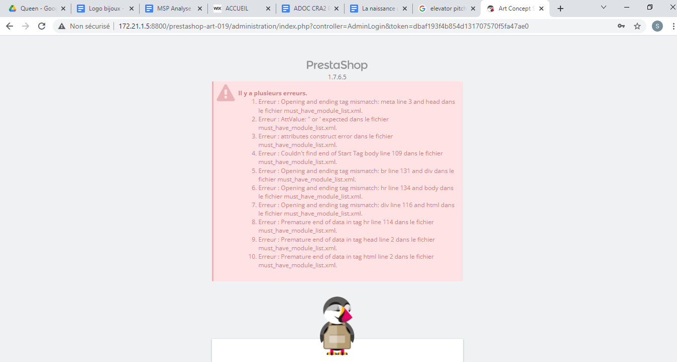 | Description | Les étudiants se connectent sur prestashop et au bout de quelques minutes de travail, quand ils veulent passer une commande par exemple, ou parfois dès qu'ils commencent à travailler, un message d'erreur s'affiche. Je le mets en pj. Merci de votre aide. | ||||